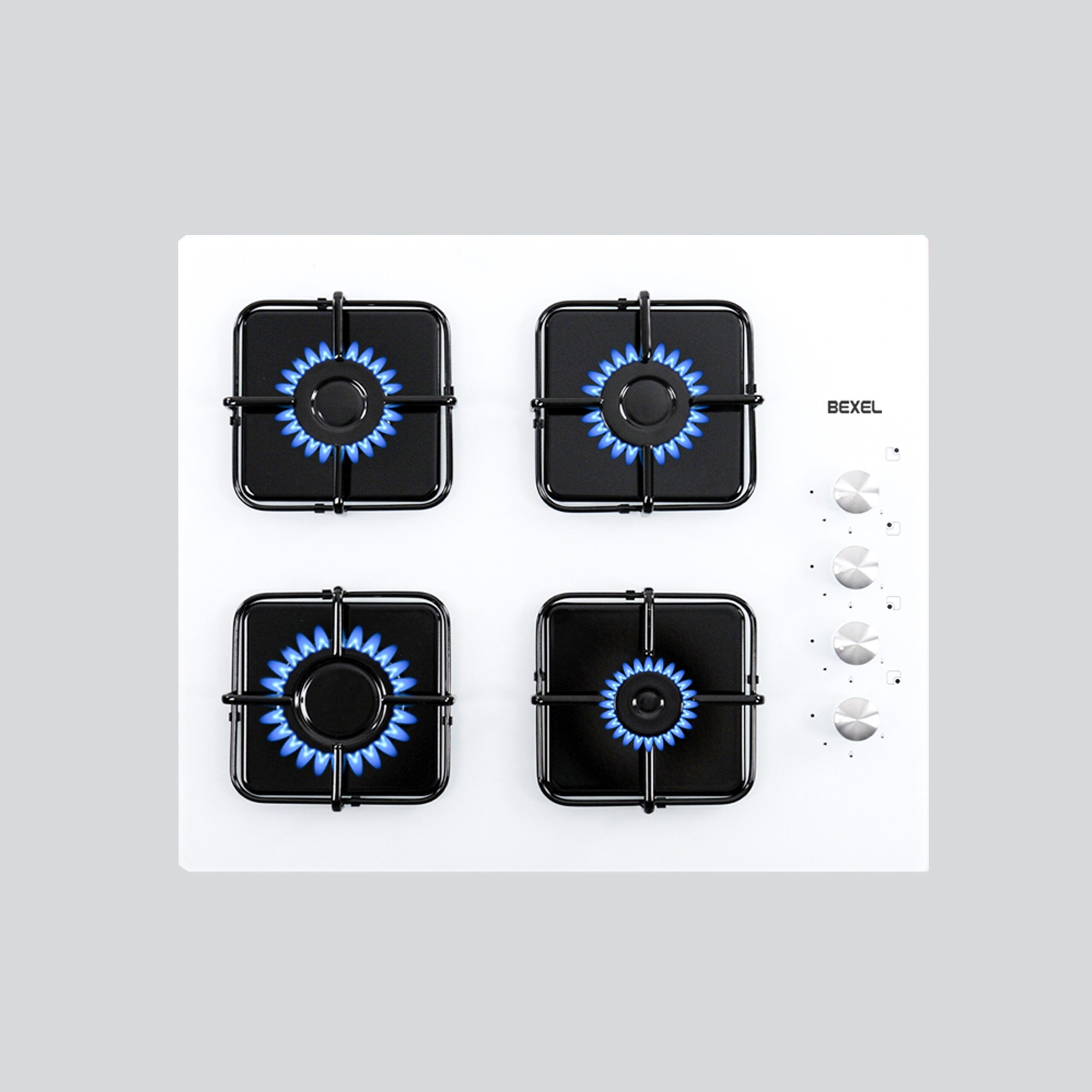 • 4 Gözü Gazlı Beyaz Optik Cam Ankastre Ocak