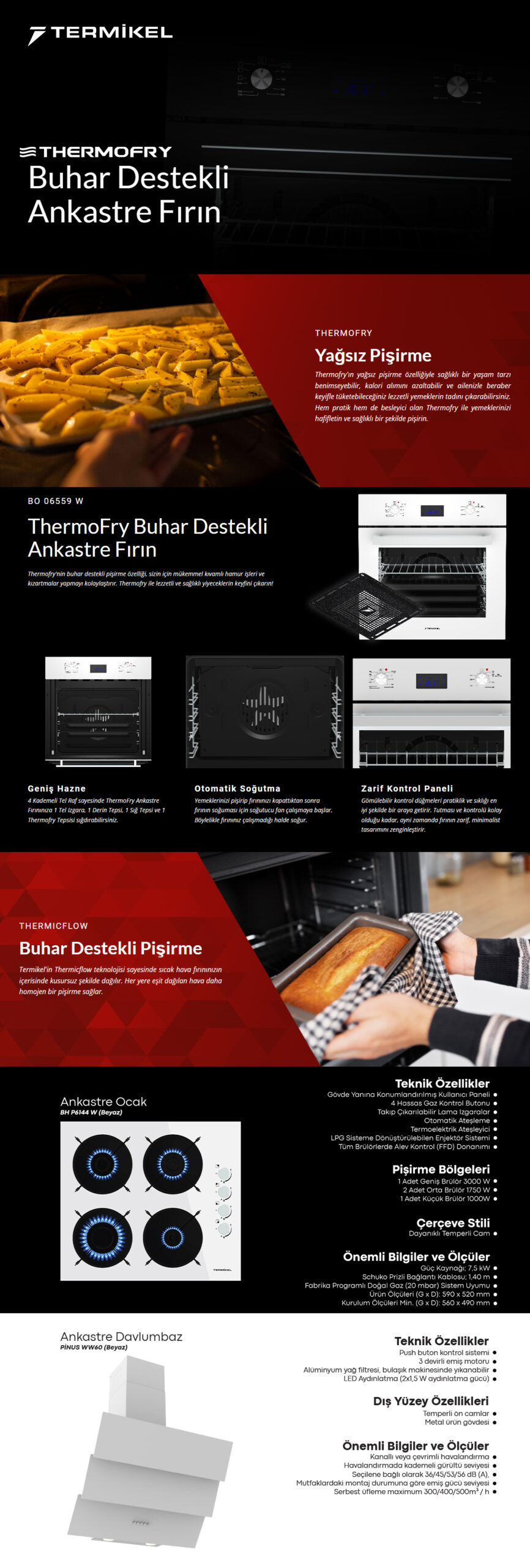 Be the first to review “ThermoFry Buhar Destekli Ankastre Set (BO O6559 W-01 + BH P6144 W + PİNUS WW60)”